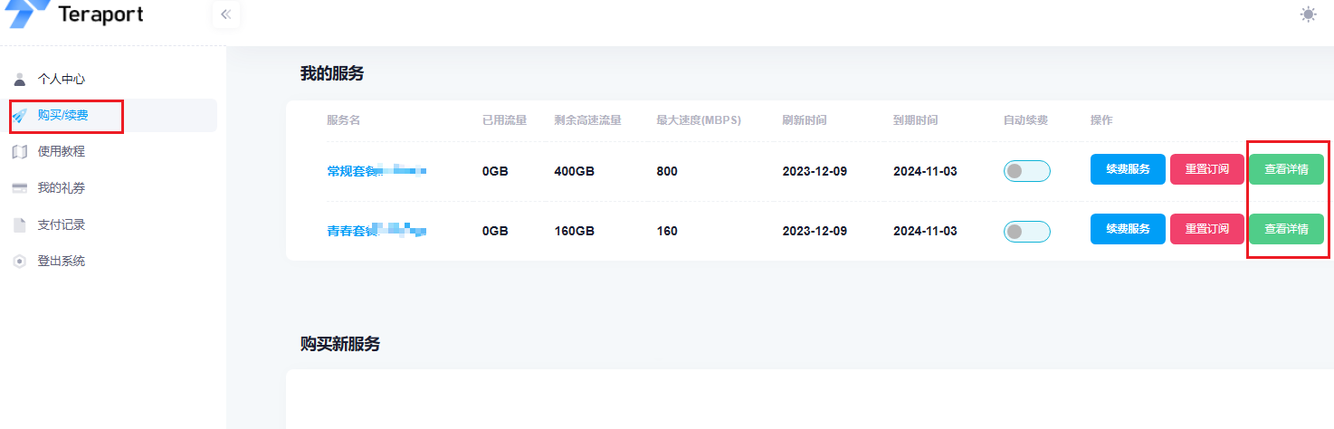 * 注册Teraport账户并购买Teraport服务