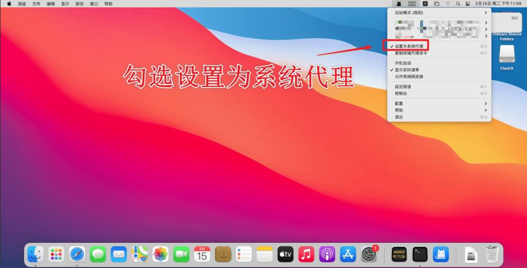 6.设置为系统代理，完成配置
